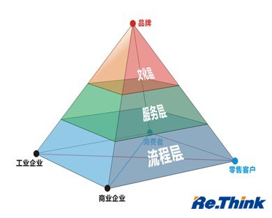 該模型的縱切面為三角形,分別表示四個(gè)主體之間兩兩相關(guān)的關(guān)系,并相互交叉,構成交互契合的立體結構。每個(gè)側面代表工商零消四方主體之一方,通過(guò)自下而上三個(gè)層面:流程層、服務(wù)層和文化層共同指向卷煙品牌,以培育品牌為該模型的最終目標。